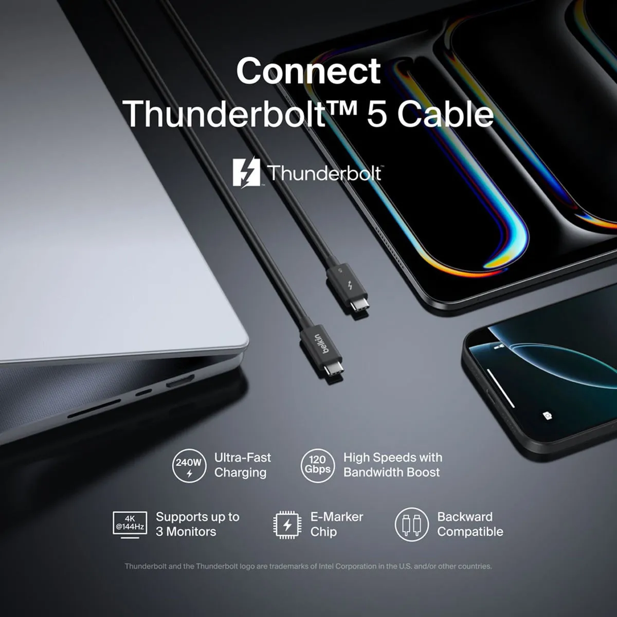 Thunderbolt 5 Cable - 1M Black High-Speed Connection |
