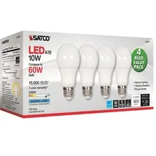 Satco 10W A19 LED 5000K Light Bulbs - 10 W - 60 W Incandescent Equivalent Wattage - 120 V AC - 800 l... |