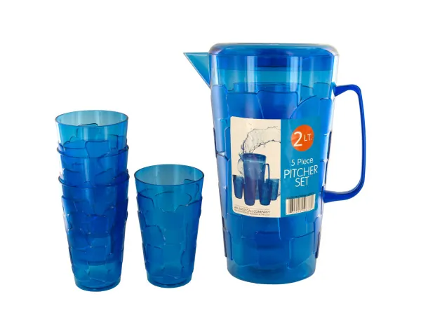 Ice Cube Design 2-Liter Pitcher with Cups Set |