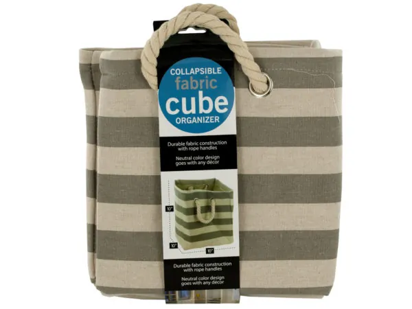 Striped Collapsible Fabric Storage Cube with Rope Handles |