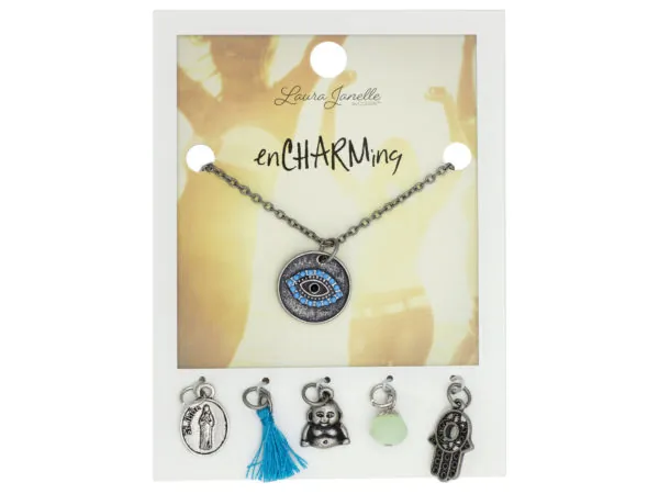Evil Eye Charm Necklace with St. Jude and Hamsa Charms |